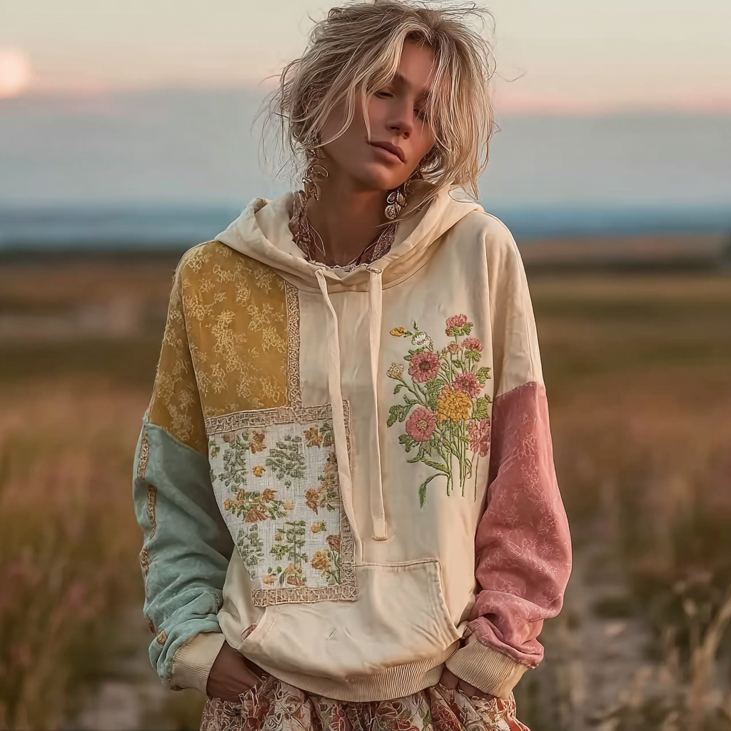 Bohemian Retro Style Plant Flower Pattern Design Casual Hoodie