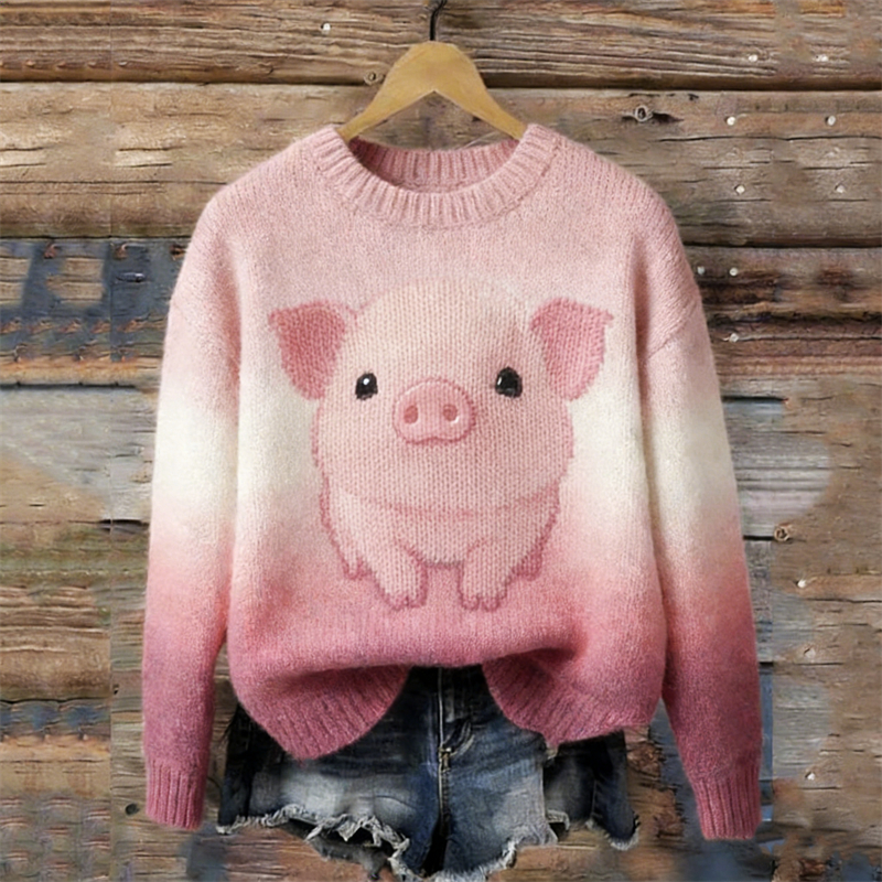 Lovely Baby Pig Gradient Color Cozy Knit Sweater