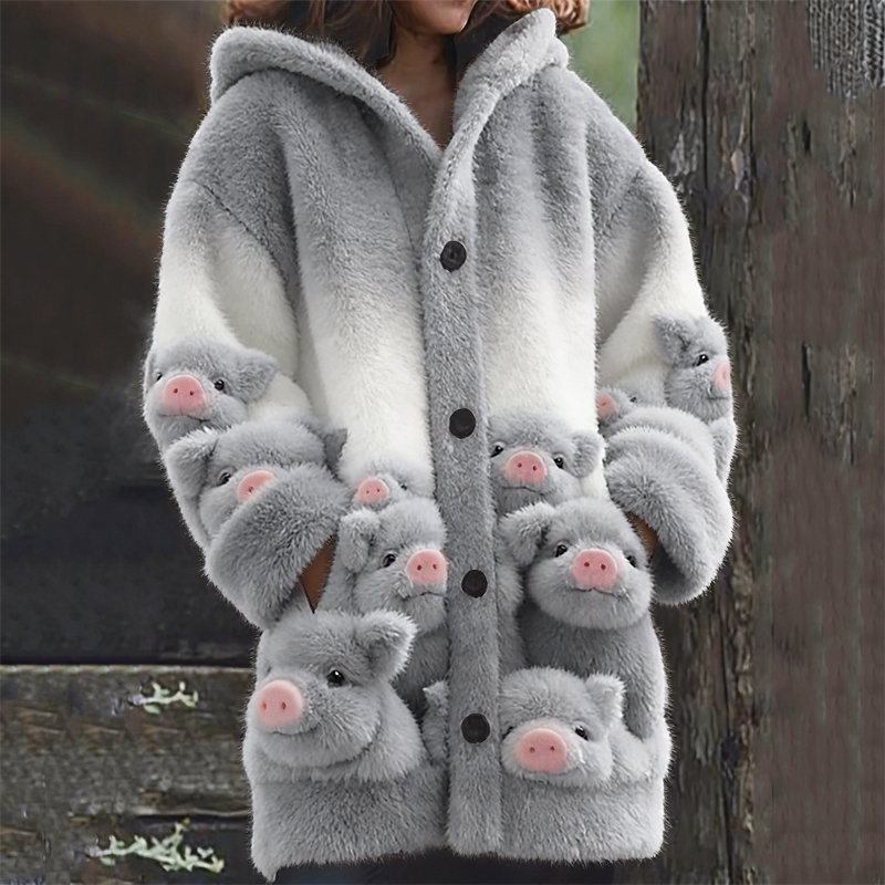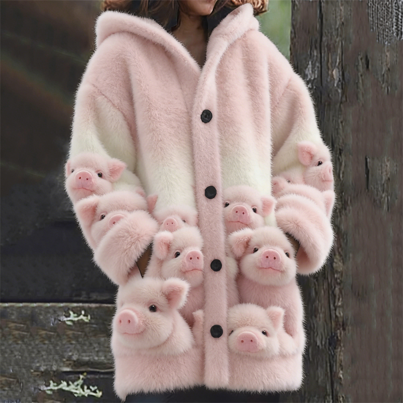 Lovely Fuzzy Pigs Gradient Cozy Hooded Cardigan