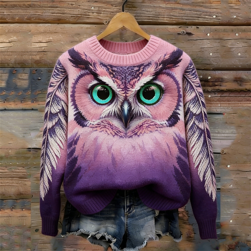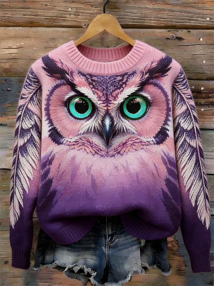 Mystical Forest Owl & Feathers Gradient Cozy Knit Sweater
