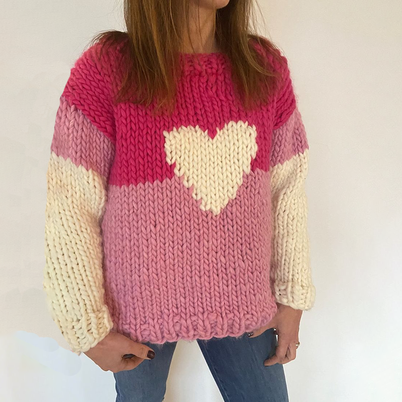 Valentine Vibes Valentine Heart Art Print Knitted Pullover Sweater