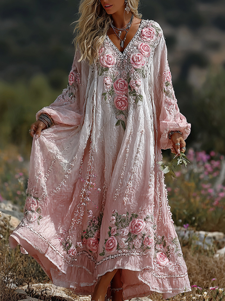 Women’s Bohemian Floral Lace V-neck Maxi Dress