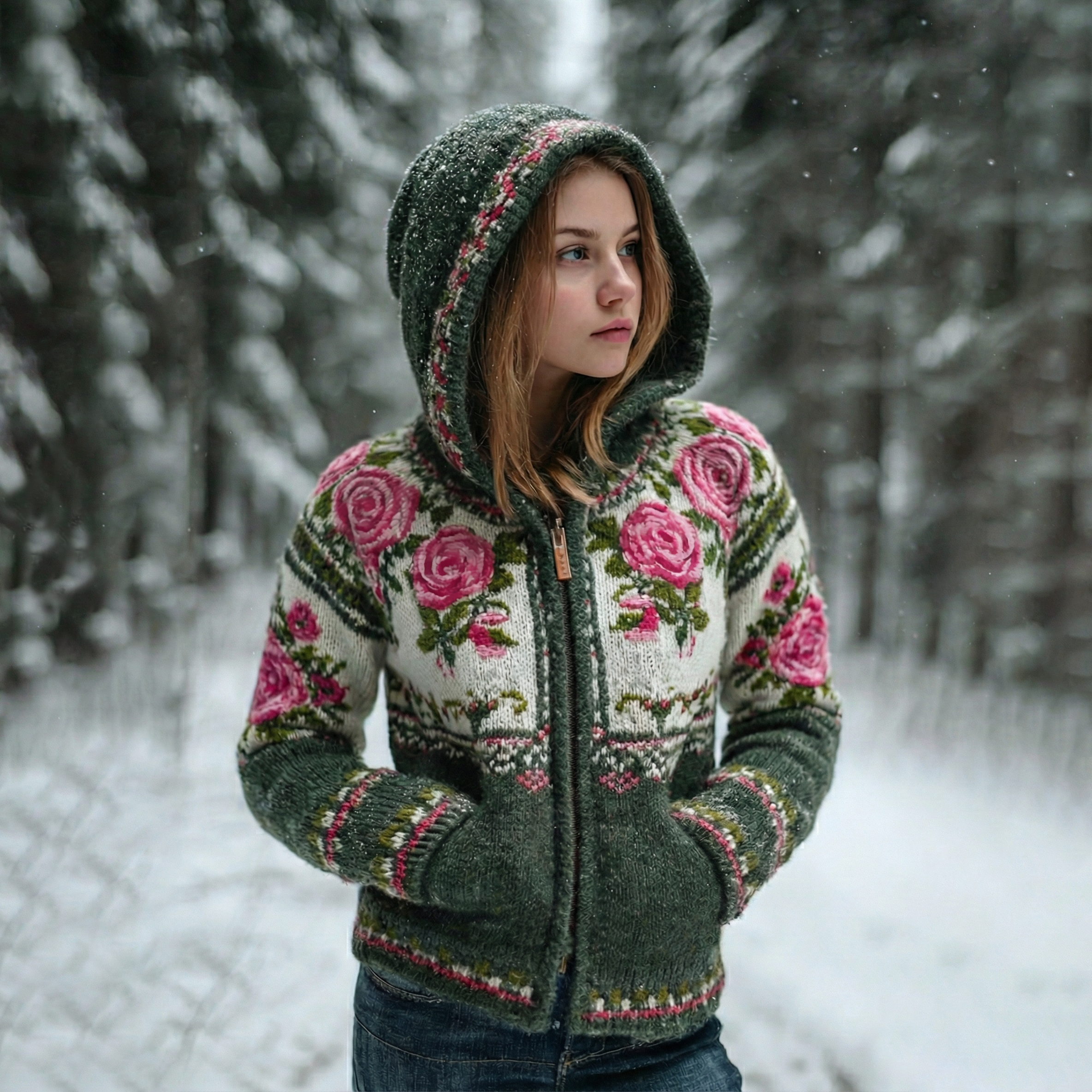 Women’s Boho Floral Art Pattern Knit Zip-up Sweater