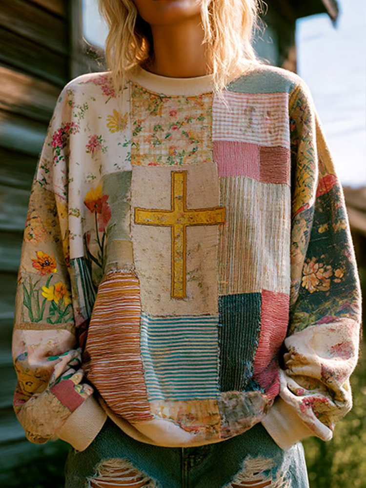 Women’s Cross Floral Patchwork Cozy Sweatshirt