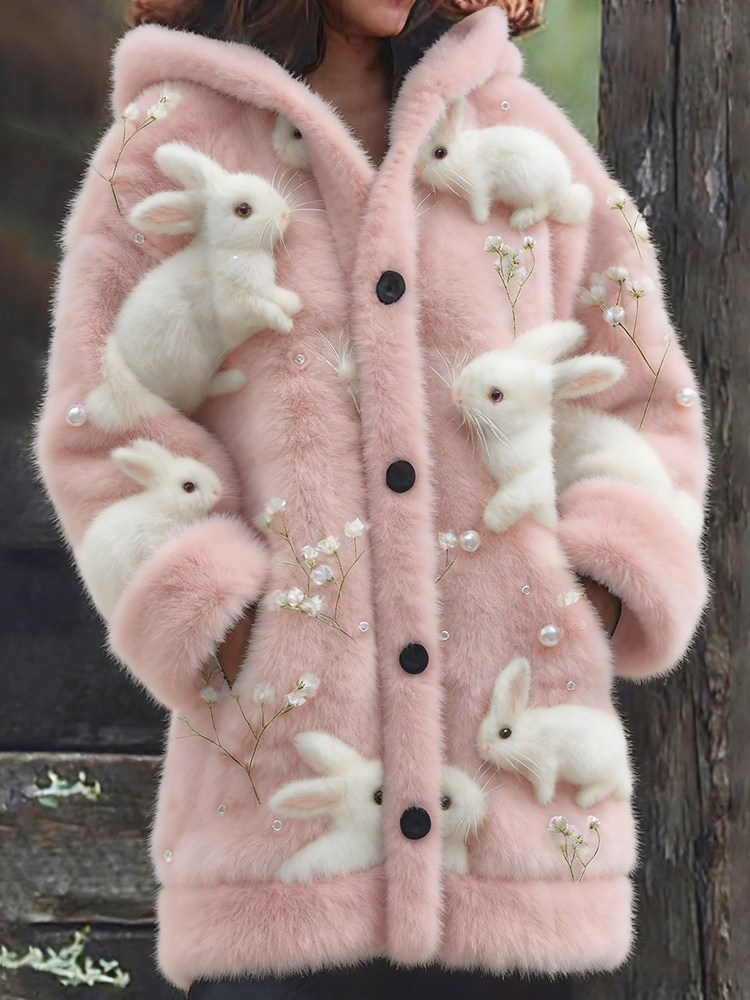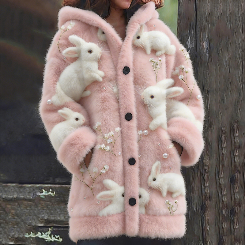 Women’s Cute Bunny Pattern Warm Hooded Cardigan