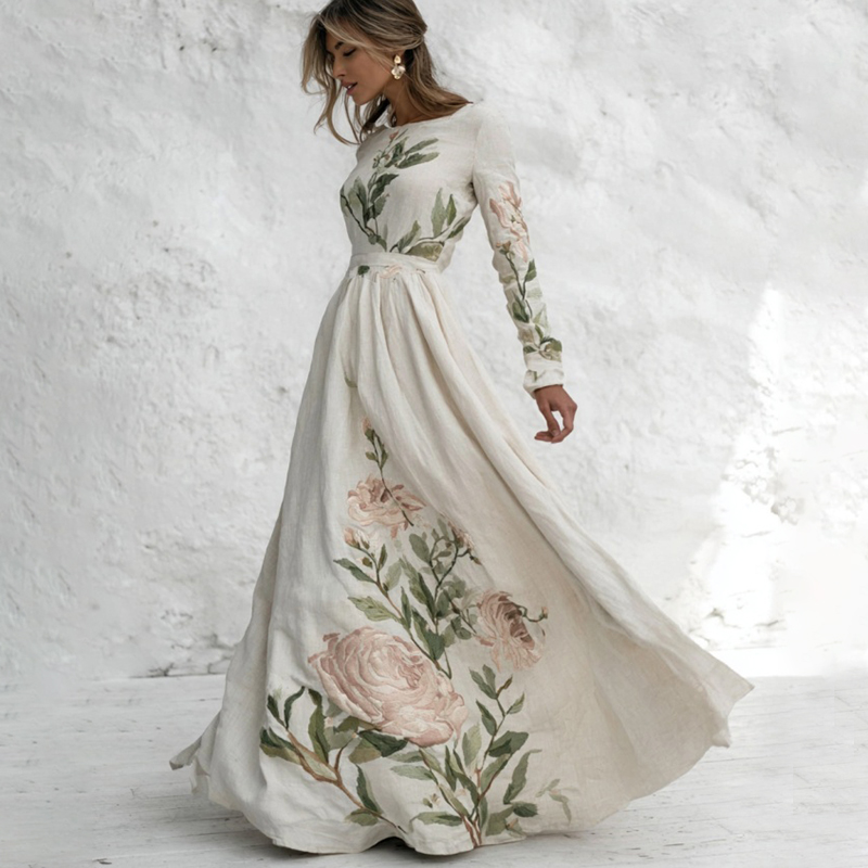 Women’s Floral Printed Art Long Sleeve Maxi Dress