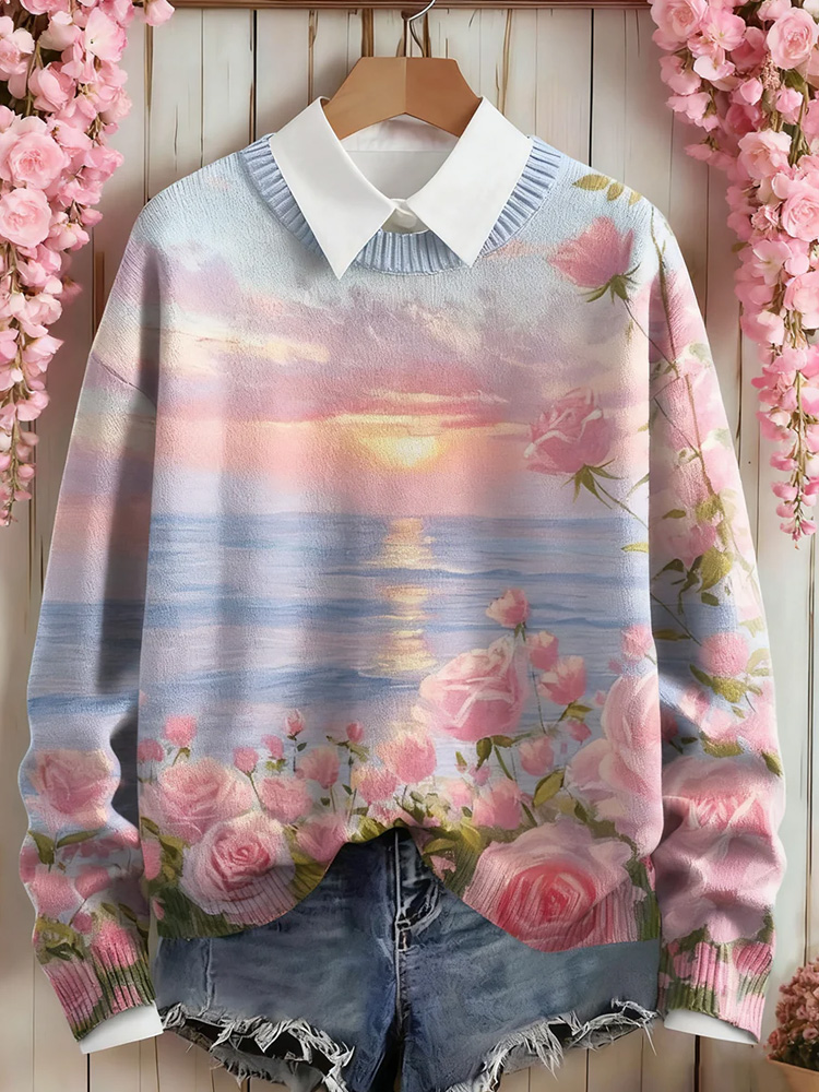 Women’s Pink Floral Art Print Sweater