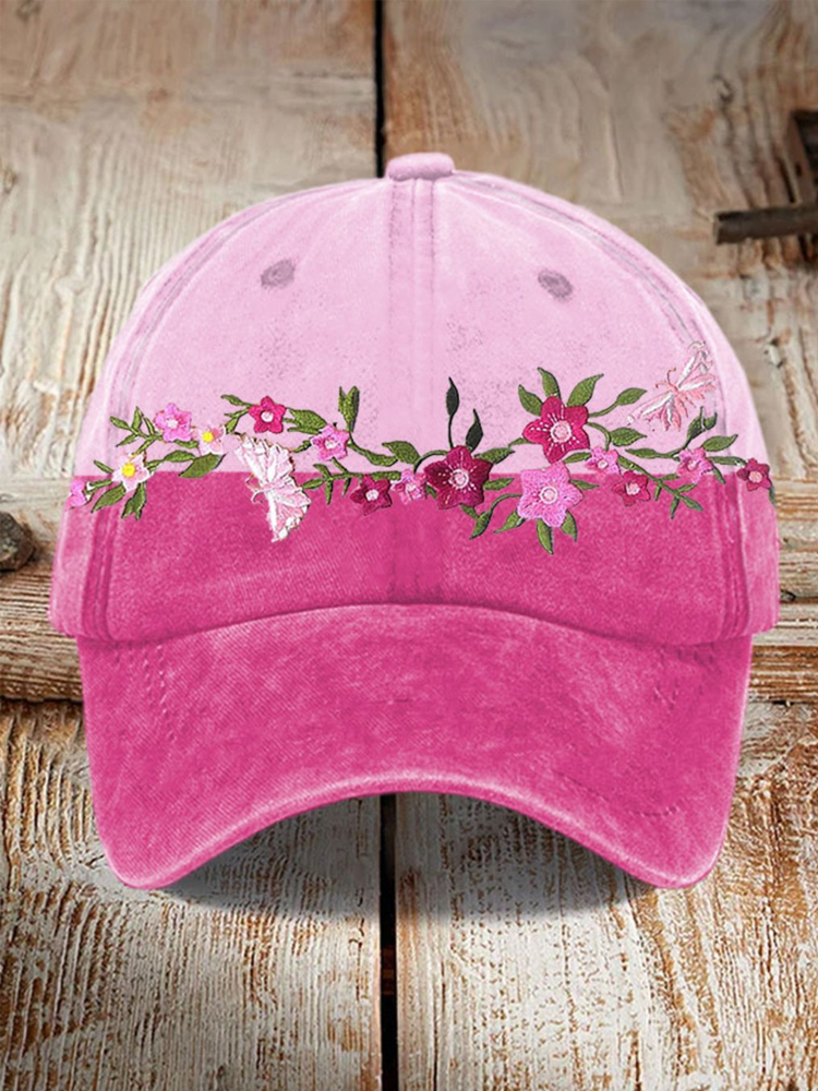Women’s Pink Flowers Embroidery Pattern Hat