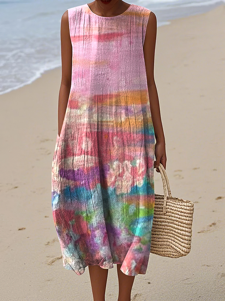 Women’s Retro Cancer Awareness Ribbon Art Gradient Style Print Sleeveless Cotton Wrap Dress
