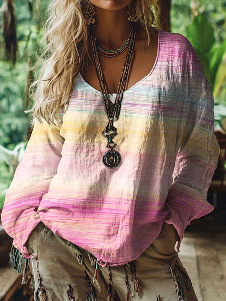 Women’s Vintage Cancer Awareness Ribbon Gradient Long Sleeve T-shirt