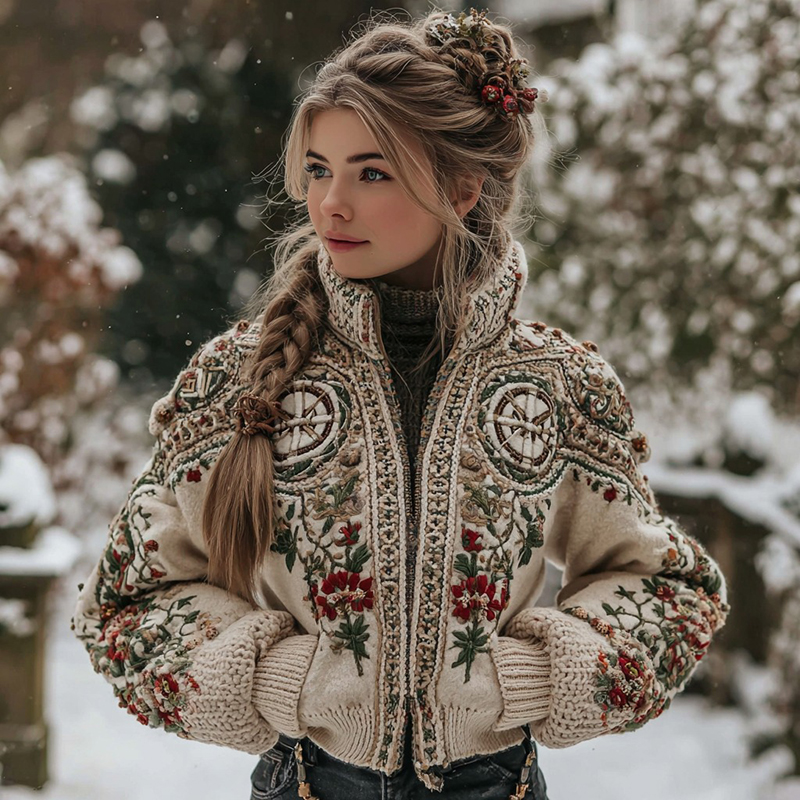 Women’s Vintage Ethnic Floral And Viking Vegvisir Art Zipper Cardigan