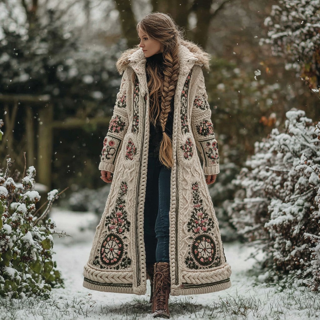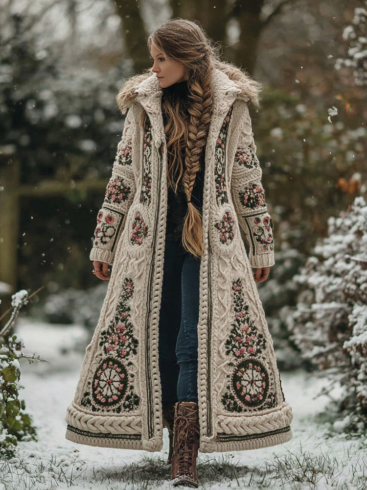 Women’s Vintage Viking Floral Vigvihil Rune Long Thick Knit Sweater