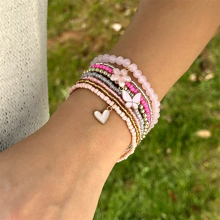Bohemian 9-piece Butterfly, Flower And Heart Beaded Bracelet
