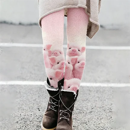 Lovely Fuzzy Pigs Gradient Cozy Knit Leggings