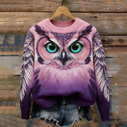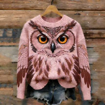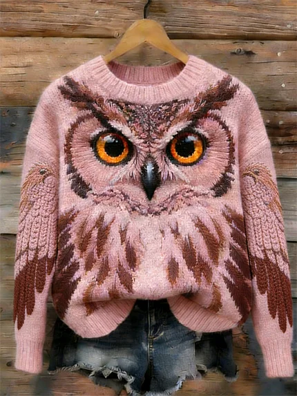 Forest Pink Owl Inspired Cozy Knit Sweater