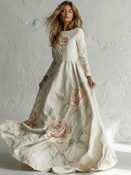 Women’s Vintage Rose Art Flowy Maxi Dress