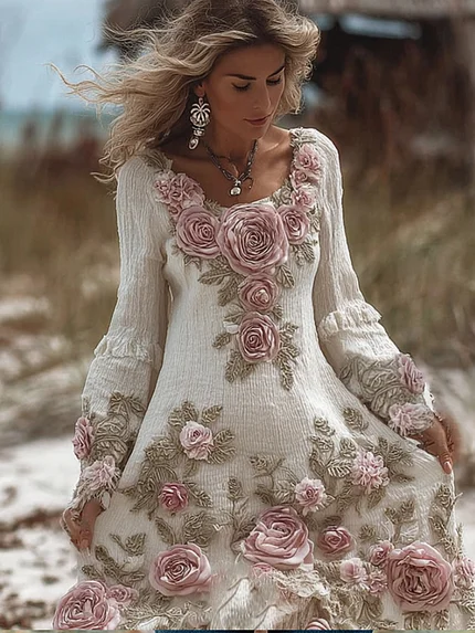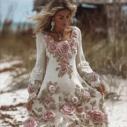 Women’s Vintage Three-dimensional Rose Long-sleeved Skirt