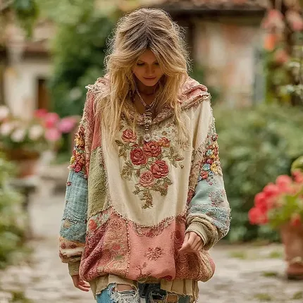 Women’s Vintage Floral Pattern Hoodie