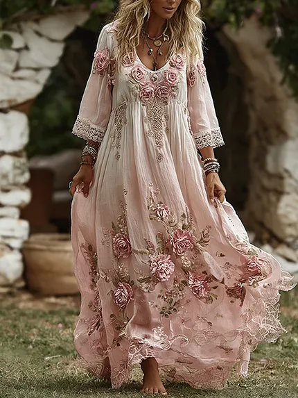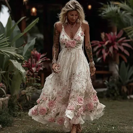 Women’s Bohemian Rose Pattern Linen Sundress